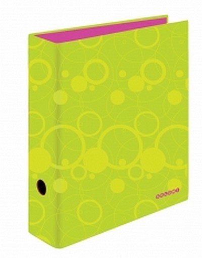 Pákový pořadač A4 v novém designu DUO COLORI, hřbet 70 mm, páková mechanika, rado, kapacita 675 listů, hřbetní kroužek, laminovaný povrch. Barva: zeleno-růžová.