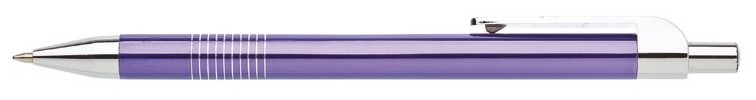 Kuličkové pero LAURIA je vyrobeno z hliníku. Má fialové tělo se stříbrnými doplňky jako jsou špička, klip a cvakátko. Úchopová část má 10 stříbrných proužků po celém obvodu tužky. Náplň- X20, modře píšící.