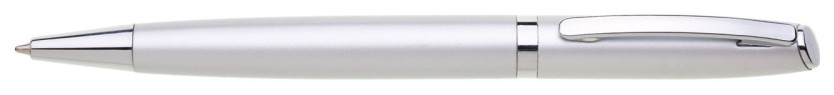 Hliníková propiska TORICO s otočným mechanismem v barvě matně stříbrné a lesklými stříbrnými doplňky. Náplň velkoobsahová, modře píšící.