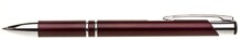 Plastové propisovací pero OIRA - bordó. Pero je zdobené dvěma stříbrnými proužky. Na těle je zdobeno oválným výřezem. Pero má náplň velkoobsahovou, modře píšící.