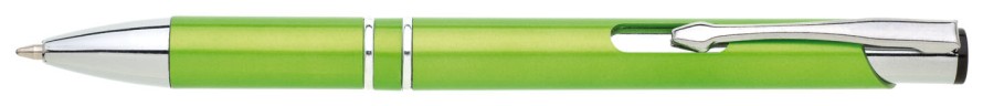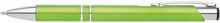 Plastové propisovací pero OIRA - ve světle zelené barvě. Pero je zdobené dvěma stříbrnými proužky. Na těle je zdobeno oválným výřezem. Pero má náplň velkoobsahovou, modře píšící.