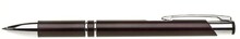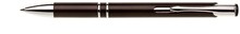 Plastové propisovací pero OIRA - černé. Pero je zdobené dvěma stříbrnými proužky. Na těle je zdobeno oválným výřezem. Pero má náplň velkoobsahovou, modře píšící.