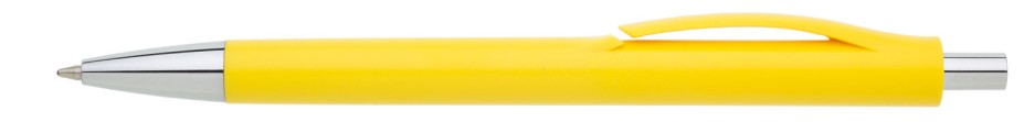 Propiska LINEA žlutá má zajímavě řešený klip a stříbrné doplňky, modře píšící náplň. Kolekce DESIGN.