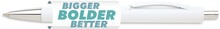 Propiska LINEA bílá má zajímavě řešený klip a stříbrné doplňky, modře píšící náplň. Kolekce DESIGN.