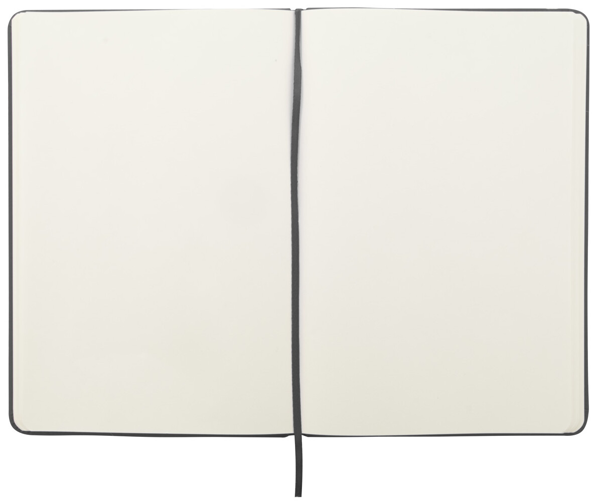 Sada s blokem s deskami z PU kůže se 100 čistými listy a stejně barevným plastovým kuličkovým perem s modrou náplní, v bílé dárkové krabičce.