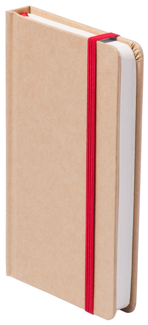 Blok s deskami potaženými recyklovaným kartonem se 100 čistými listy, barevnou záložkou a gumičkou.