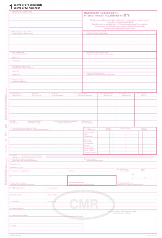 | 1197 | CMR mezinár. nákl. list A4/5 listů | 5,64 Kč | 6,82 Kč | 1 bal | |||