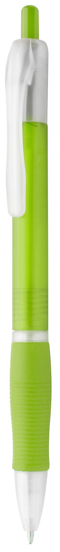 Plastové kuličkové pero s pogumovaným gripem a s modrou náplní.