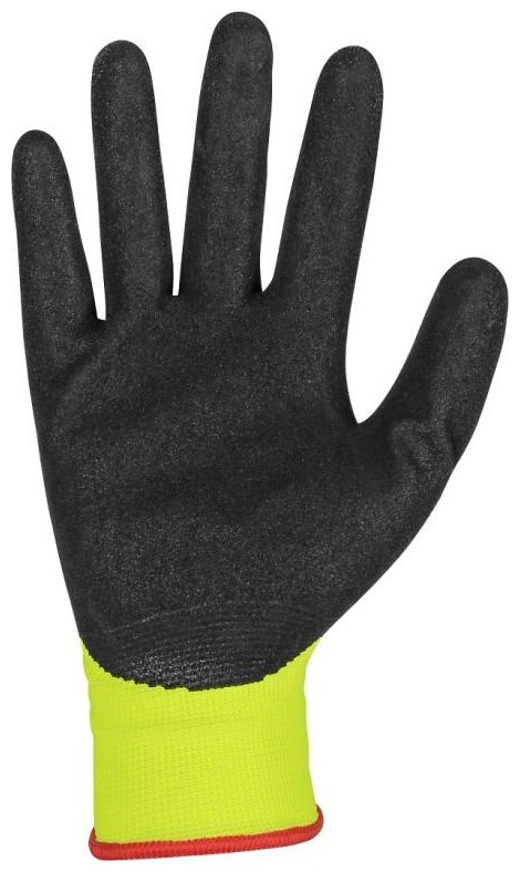 Bezešvé rukavice z měkčeného úpletu, dlaň a prsty povrstveny latexem s pískovou úpravou.
