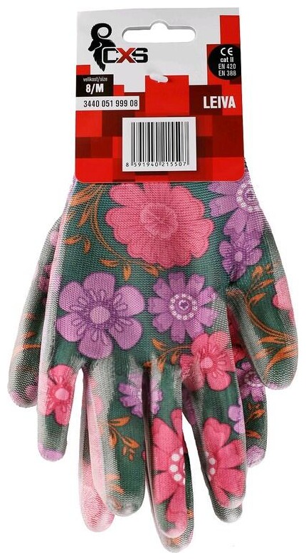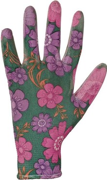 Pletené bezešvé rukavice s potiskem, dlaně a prsty povrstveny polyuretanem, pružná manžeta. Baleny s blistrem.