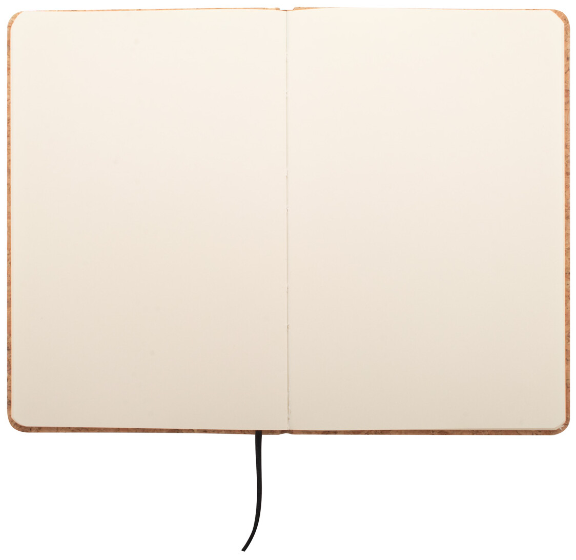 Blok A5 s deskami z přírodního korku s 80 čistými listy a gumičkou.