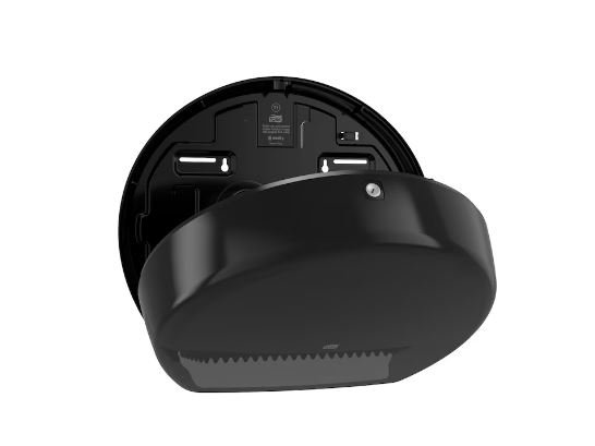 Zásobník na toaletní papír Tork Elevation 554008 jumbo, černý, systém T1 je praktické a spolehlivé řešení pro toalety s vysokou návštěvností. Vysoká kapacita zásobníku šetří čas při doplňování a zajišťuje, že papír je vždy k dispozici. Moderní design Tork Elevation působí profesionálně a na vaše hosty udělá trvalý dojem.