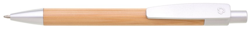 Dřevěné kuličkové pero BORGO - tělo je vyrobeno z bambusu, špička, klip a cvakátko je ze stříbrného plastu.