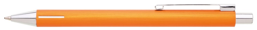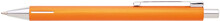 Elegantní hliníková propiska s jemně rýhovaným, oranžovým povrchem a stříbrnými doplňky.