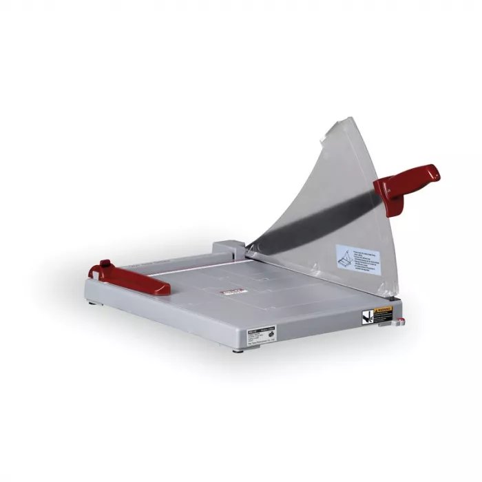 Hobby páková řezačka A4. Vhodná do každé kanceláře. Tato řezačka je vybavena plastovým ochranným krytem a plastovým stolem s oděruvzdorným povrchem ABS, s vyznačenými měřítky a DIN formáty a posuvným dorazem papíru se šroubovou aretací.