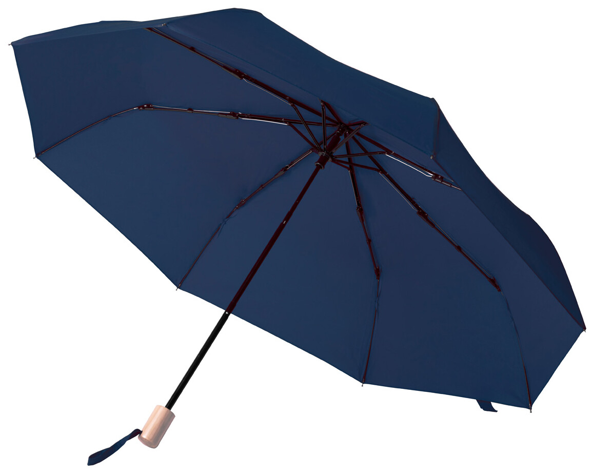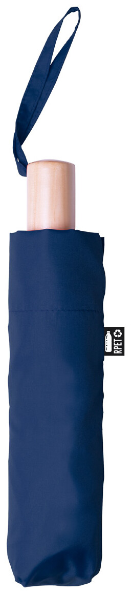 Manuální, větrudodolný skládací deštník s 8 panely ve stejně barevném pouzdře. S kovovým rámem, sklolaminátová žebra a dřevěná rukojeť. 190T RPET pongee, s etiketou s označením RPET.