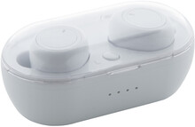Skutečná bezdrátová stereofonní sluchátka (TWS) s funkcí hands-free volání v plastovém nabíjecím pouzdře. Včetně nabíjecího kabelu USB.