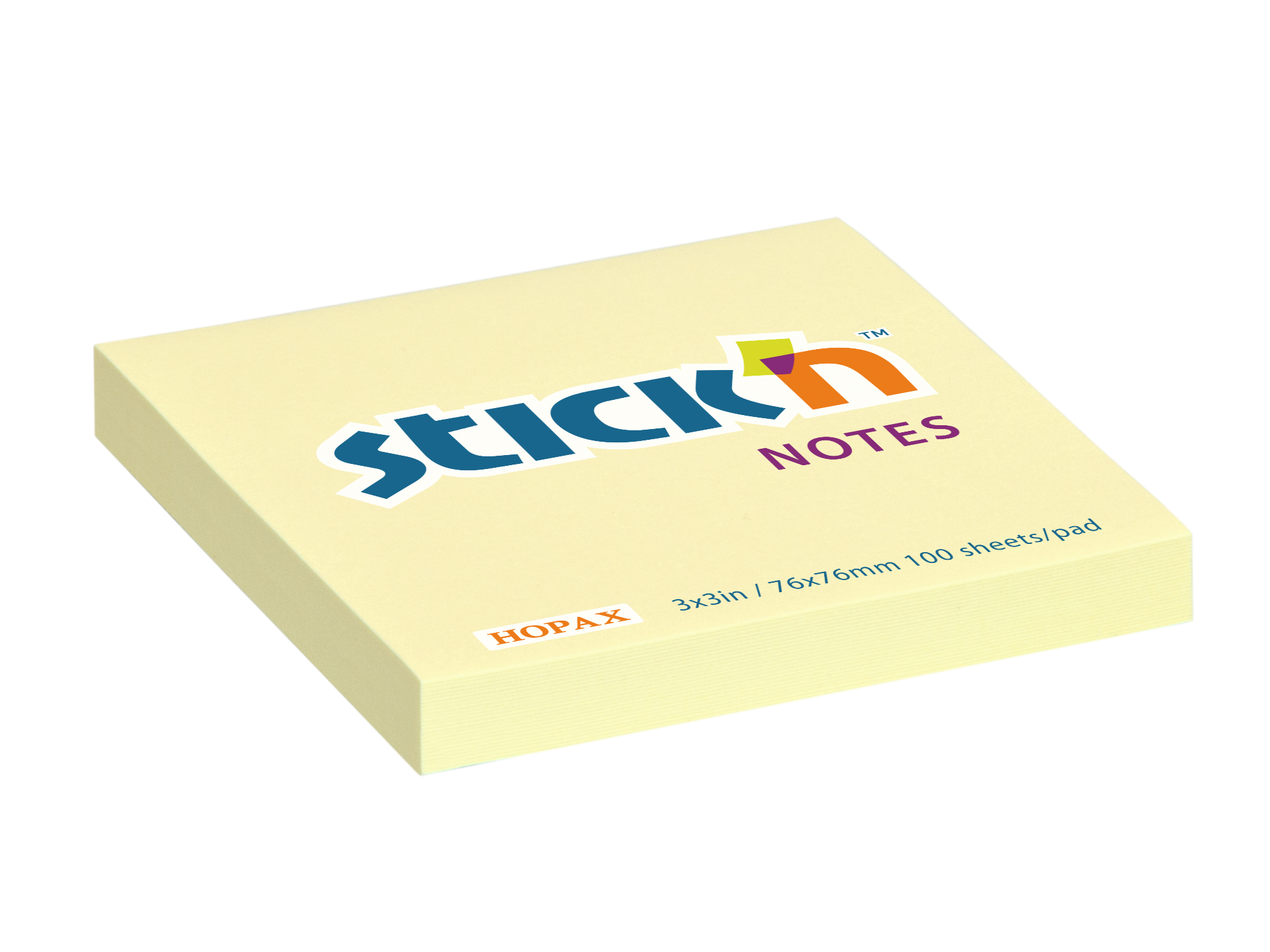 Samolepicí bloček Stick'n by Hopax, 76 x 76 mm, žlutý, 100 lístků