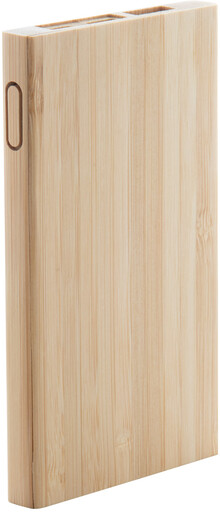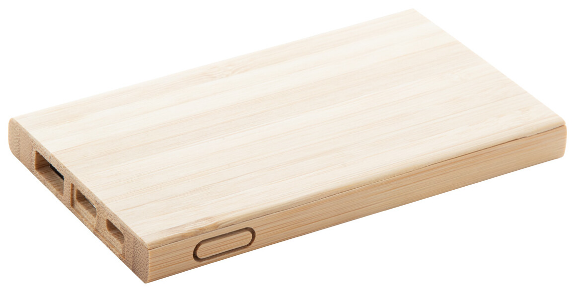 Bambusová USB power banka s 4000 mAh baterií. Power banka může být nabíjena prostřednictvím portů micro USB a USB-C. Včetně nabíjecího kabelu micro USB.