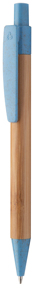 Kuličkové pero z bambusu s klipem a špičkou ze slámy, s modrou náplní.