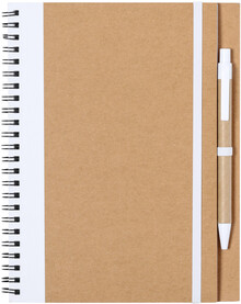 Nelinkovaný blok z recyklovaného papíru, se 60 listy a s papírovým kuličkovým perem.