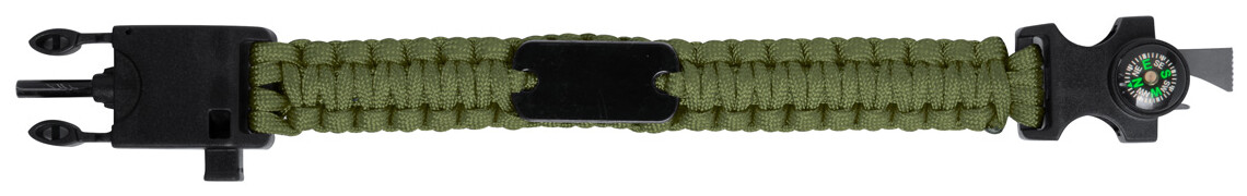 Multifunkční náramek na přežití z padákového nylonu s kompasem, píšťalkou a křesacím kamínkem na zapálení ohně.