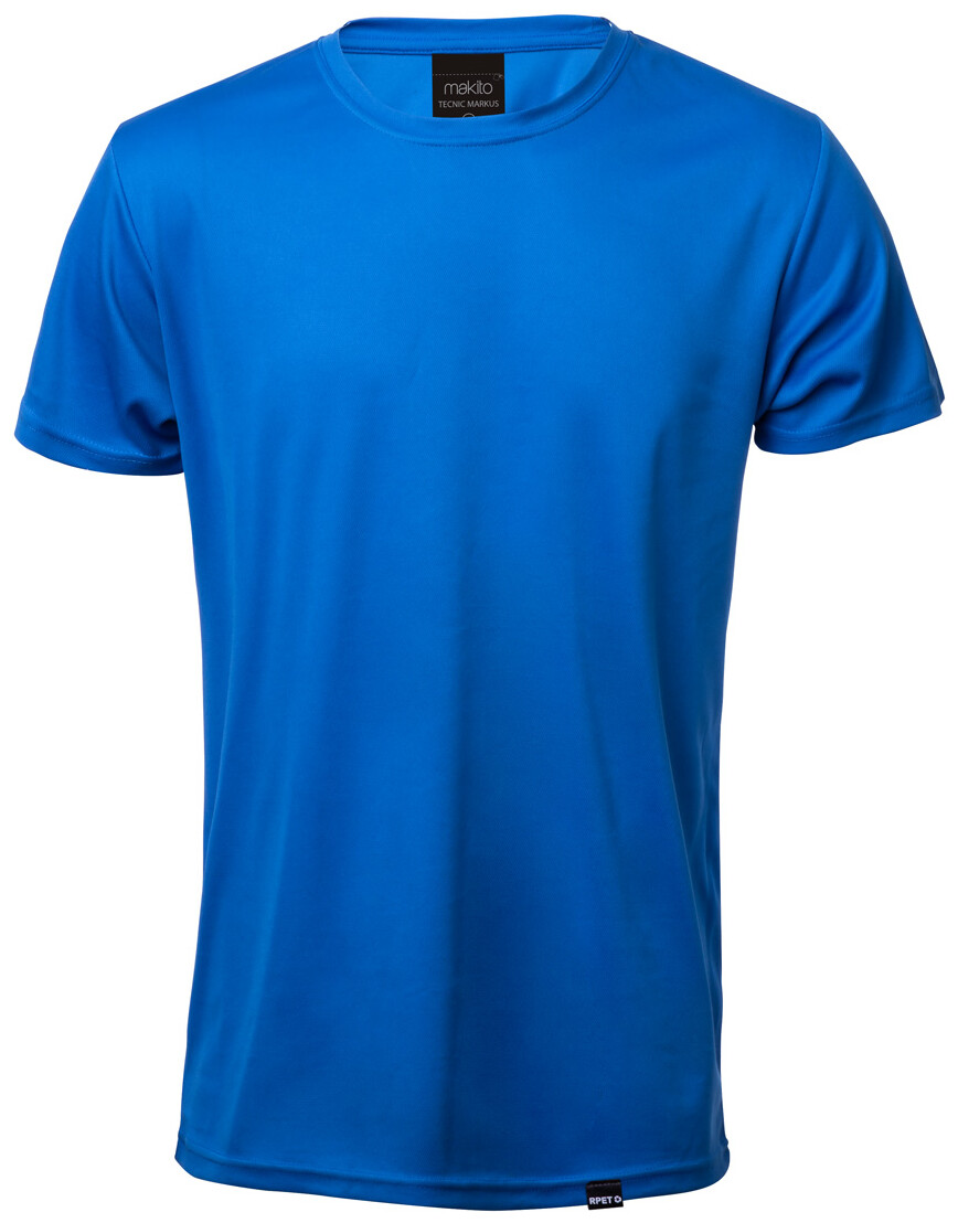 Sportovní prodyšné tričko ze 100% RPET polyesteru, 135 g/m2, s etiketou s označením RPET.