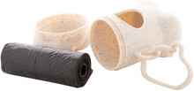 Plastový zásobník ve tvaru kosti s karabinkou z ekologického plastu ze slámy, s 15 biologicky rozložitelnými sáčky.