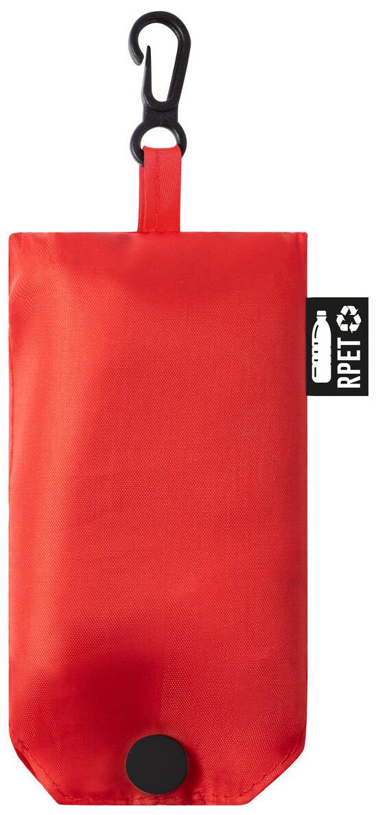 Skládací nákupní taška z RPET polyesteru, s etiketou s označením RPET.