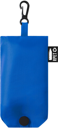 Skládací nákupní taška z RPET polyesteru, s etiketou s označením RPET.