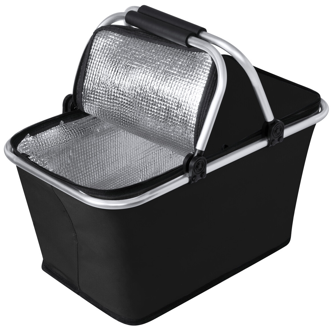 Skládací chladicí piknikový koš s hliníkovým rámem a EVA polstrovanými držadly, polyester 600D.
