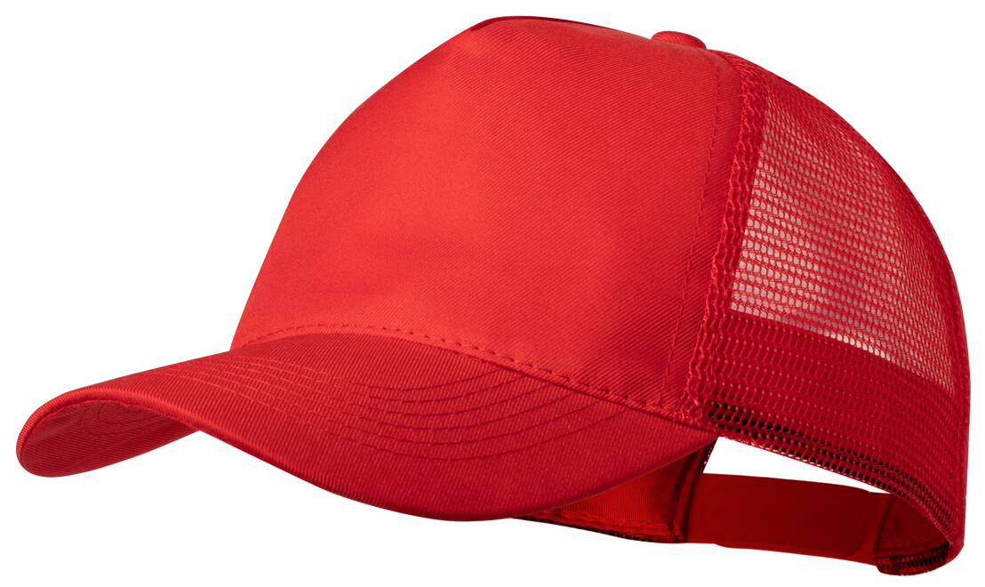 5 panelová baseballová čepice se síťovanou zadní stranou a plastovým páskem pro nastavení velikosti, polyester.