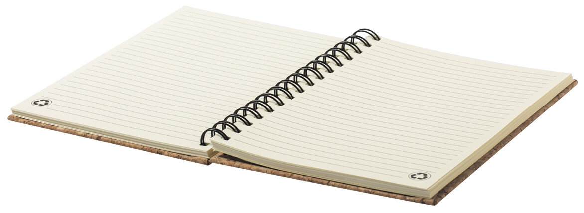 Spirálový blok A5 z přírodního korku se 100 linkovanými listy.