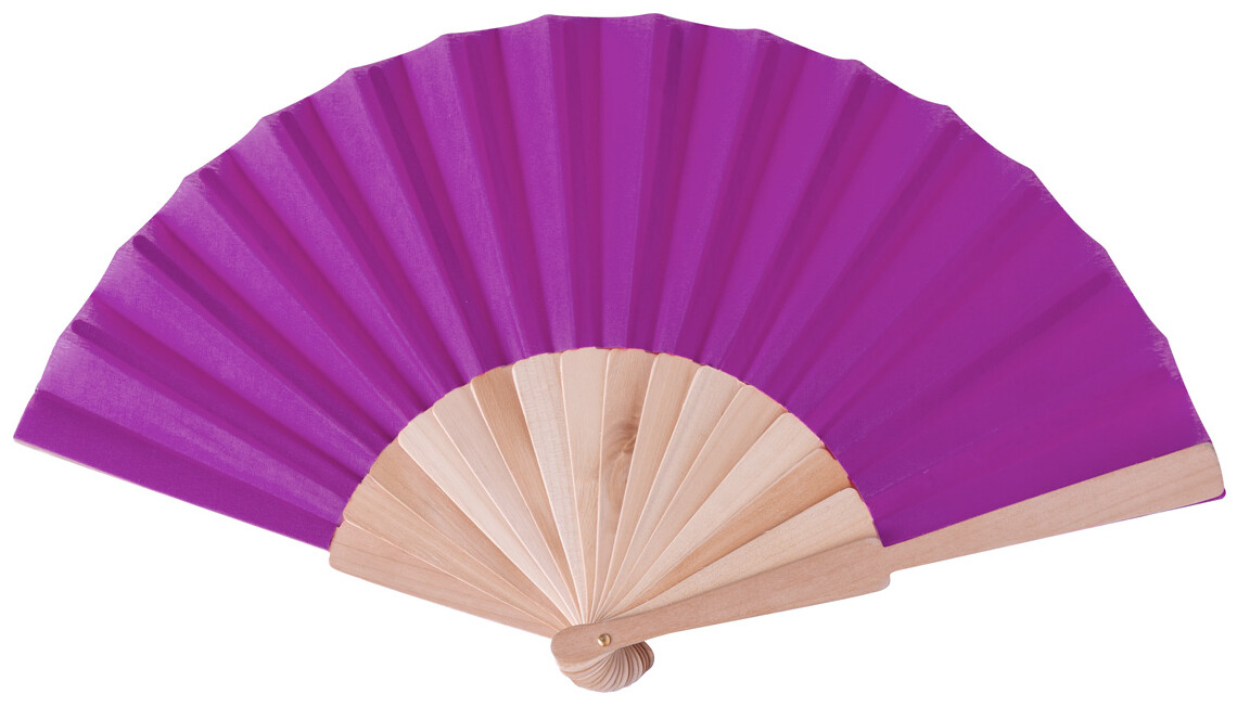 Ruční vějíř z polybavlny s dřevěnými žebry.