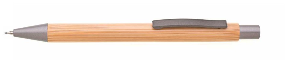 Mikrotužka s bambusovým rovným tělem, matnými šedými doplňky a kovovým klipem. Tuhy HB 0,5mm.