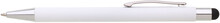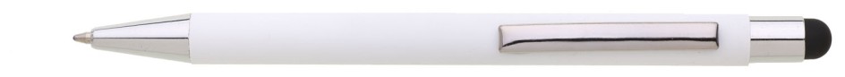 Bílá kovová propiska s černým touch koncem. Logo po vylaserování je v barvě touch – leskle černá.