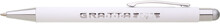 Bílá kovová propiska se stříbrným touch koncem. Logo po vylaserování je v barvě touch – leskle stříbrná.