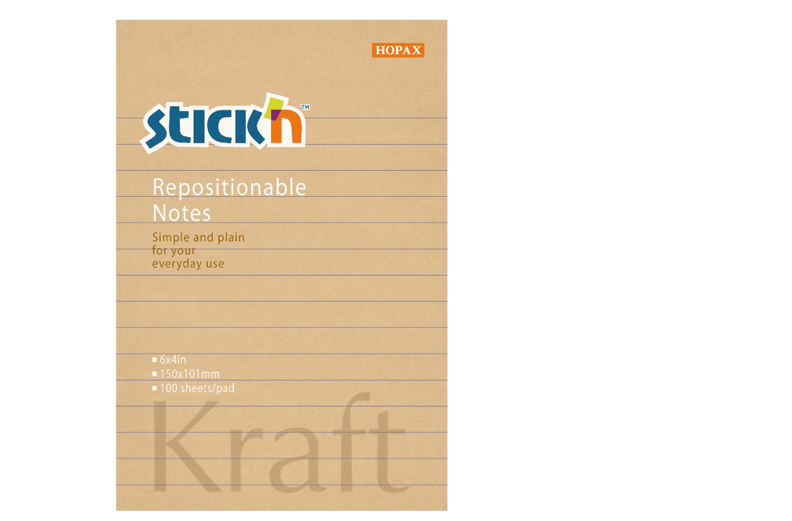 Samolepicí bloček Stick'n by Hopax KRAFT, 150 x 101 mm, přír.hnědý linkovaný, 100 lístků