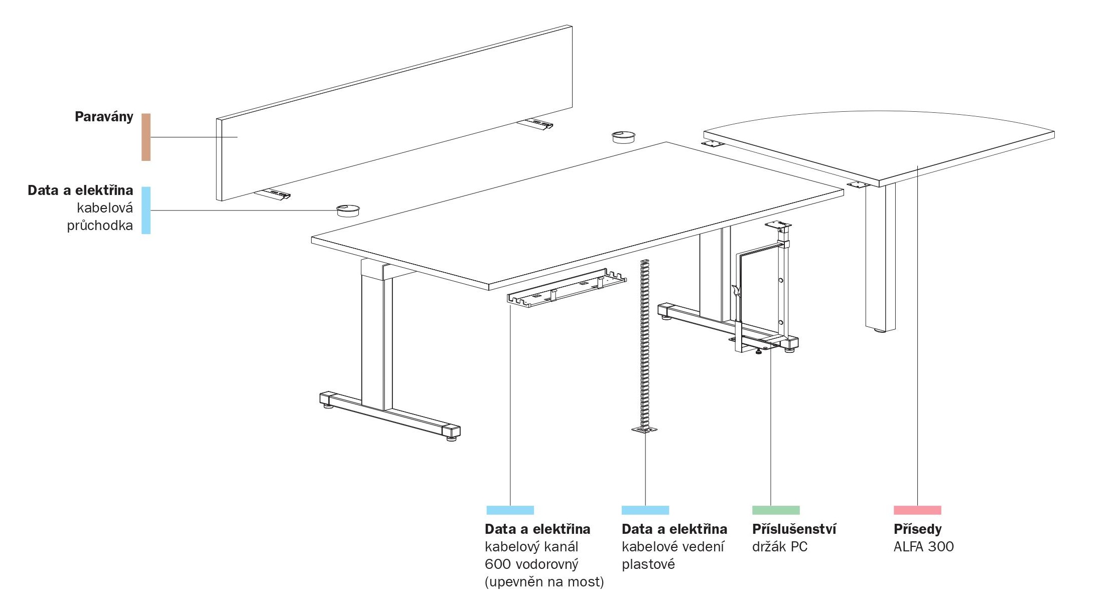 Povrchová úprava kovových částí podnoží je provedena epoxy-polyesterovou práškovou barvou, která zaručuje vysokou odolnost proti všem druhům poškození, obvyklým v kancelářském provozu.