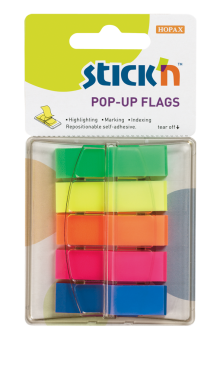 Samolepicí plastové záložky Stick'n by Hopax POP-UP, 45 x 12 mm, neon mix, 5 x 40 lístků