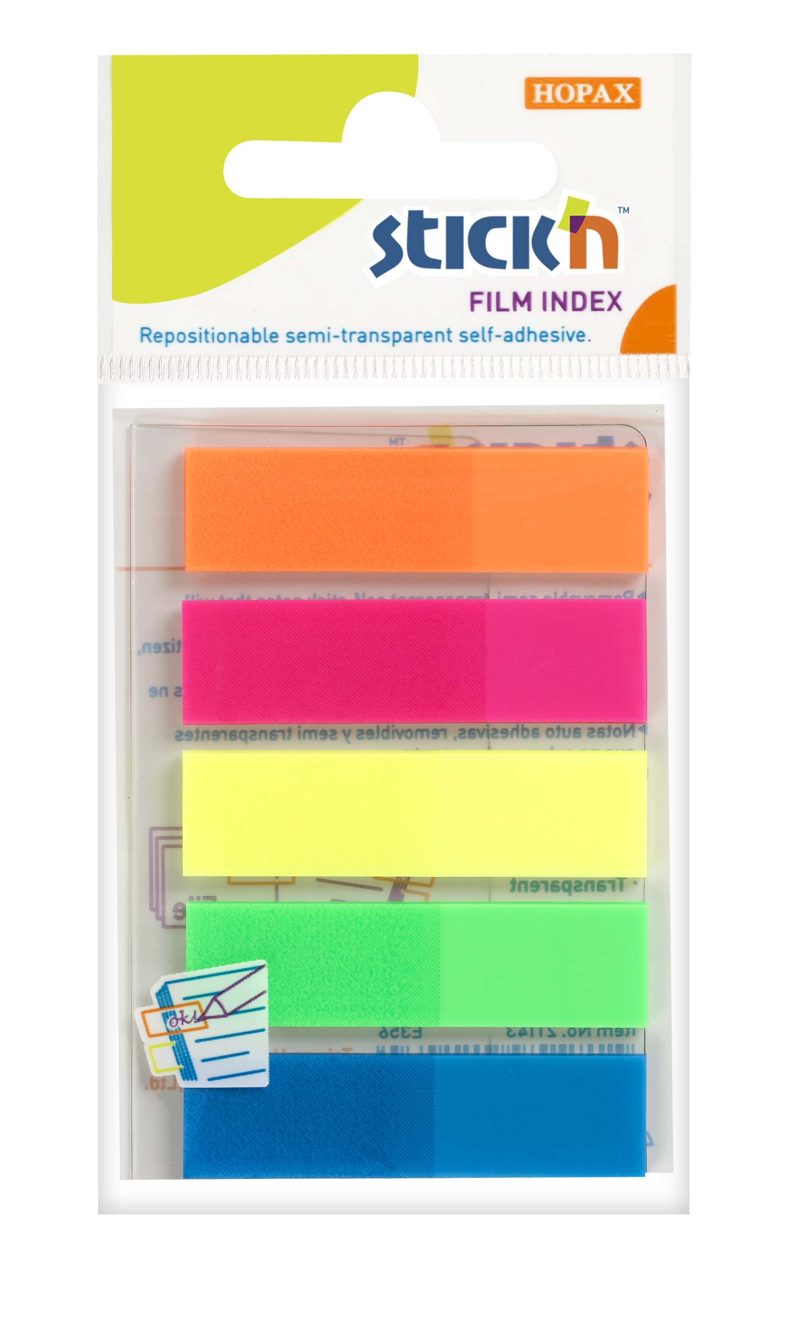 | 1726613 | Samolepicí plastové záložky Stick'n by Hopax, 45 x 12 mm, neon mix, 5 x 25 lístků | 62,89 Kč | 76,10 Kč | 1 bal | |||