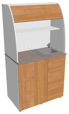 Dvě police ve vrchní části kuchyňky poskytují dostatečnou kapacitu pro vaše skleničky, hrnky či talíře. Na pracovní desku můžete umístit např. kávovar a kabelovou průchodkou v zadní části vyvedete přívodní kabel z prostoru kuchyňky.