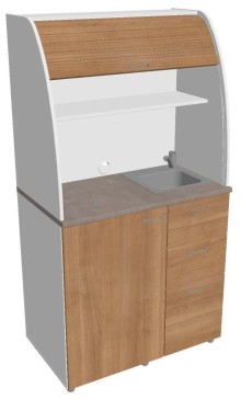 Dvě police ve vrchní části kuchyňky poskytují dostatečnou kapacitu pro vaše skleničky, hrnky či talíře. Na pracovní desku můžete umístit např. kávovar a kabelovou průchodkou v zadní části vyvedete přívodní kabel z prostoru kuchyňky.