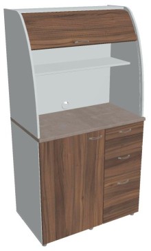 Dvě police ve vrchní části kuchyňky poskytují dostatečnou kapacitu pro vaše skleničky, hrnky či talíře. Na pracovní desku můžete umístit např. kávovar a kabelovou průchodkou v zadní části vyvedete přívodní kabel z prostoru kuchyňky.