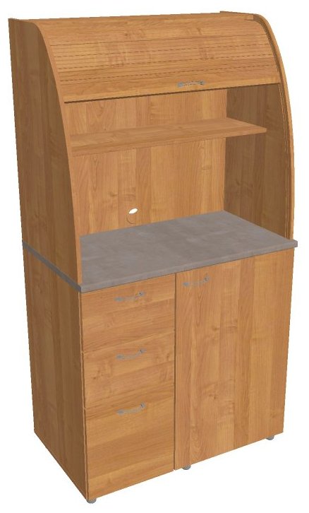 Dvě police ve vrchní části kuchyňky poskytují dostatečnou kapacitu pro vaše skleničky, hrnky či talíře. Na pracovní desku můžete umístit např. kávovar a kabelovou průchodkou v zadní části vyvedete přívodní kabel z prostoru kuchyňky.