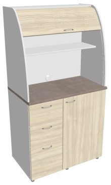 Dvě police ve vrchní části kuchyňky poskytují dostatečnou kapacitu pro vaše skleničky, hrnky či talíře. Na pracovní desku můžete umístit např. kávovar a kabelovou průchodkou v zadní části vyvedete přívodní kabel z prostoru kuchyňky.