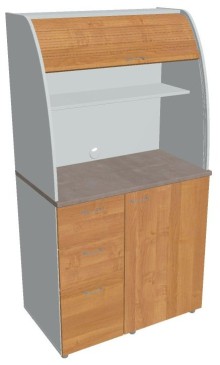 Dvě police ve vrchní části kuchyňky poskytují dostatečnou kapacitu pro vaše skleničky, hrnky či talíře. Na pracovní desku můžete umístit např. kávovar a kabelovou průchodkou v zadní části vyvedete přívodní kabel z prostoru kuchyňky.