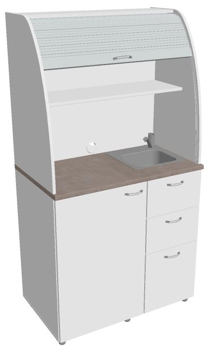Dvě police ve vrchní části kuchyňky poskytují dostatečnou kapacitu pro vaše skleničky, hrnky či talíře. Na pracovní desku můžete umístit např. kávovar a kabelovou průchodkou v zadní části vyvedete přívodní kabel z prostoru kuchyňky.