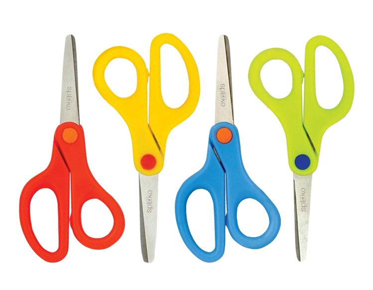 Školní nůžky Spoko 13 cm, mix barev jsou školní nůžky se zakulacenou špičkou vhodné pro bezpečné stříhání ve škole i doma. Asymetrické rukojeti kryté měkčeným plastem zajišťují pohodlné držení.