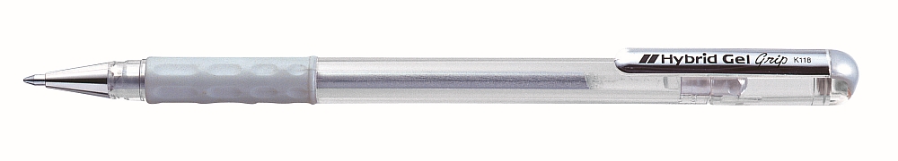 Pentel Hybrid Gel Grip - gelový roller se stříbrnou výměnnou náplní Hybrid Gel. Gelový inkoust se sytou stopou perfektně kryje, vhodné pro tmavý i bílý papír, stínování kontur a krasopis. Plastové tělo s pogumovaným protiskluzovým držením a víčkem. Kovový kónický hrot se stopou 0,7 mm.